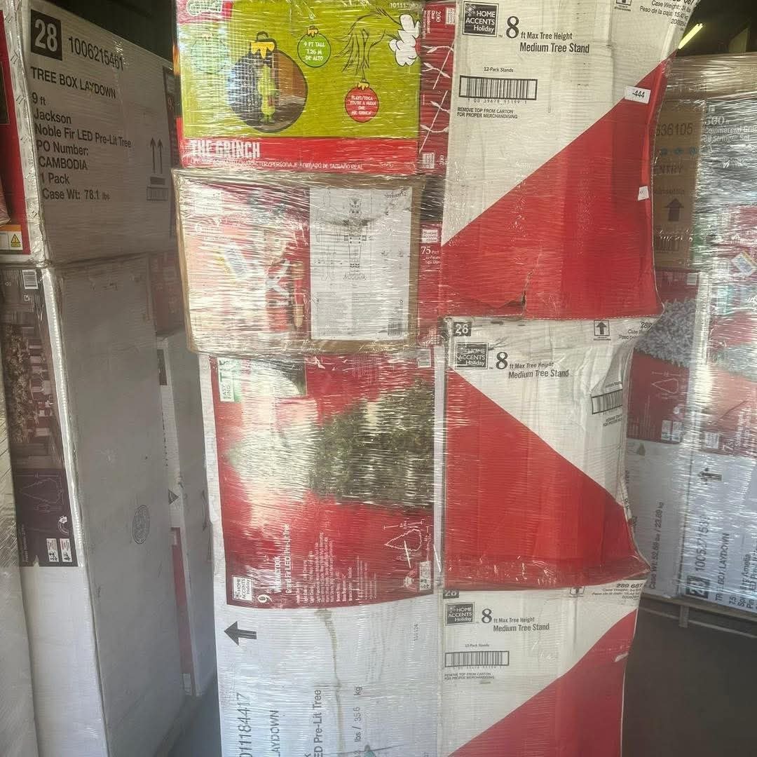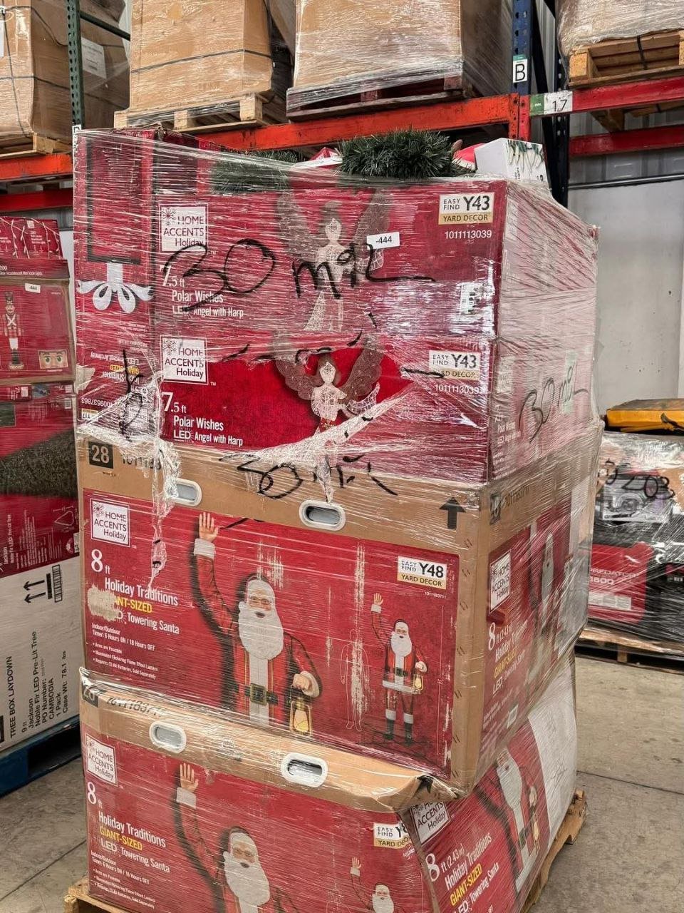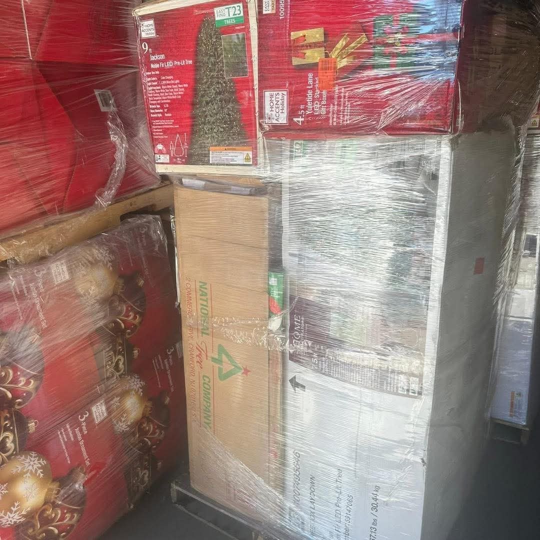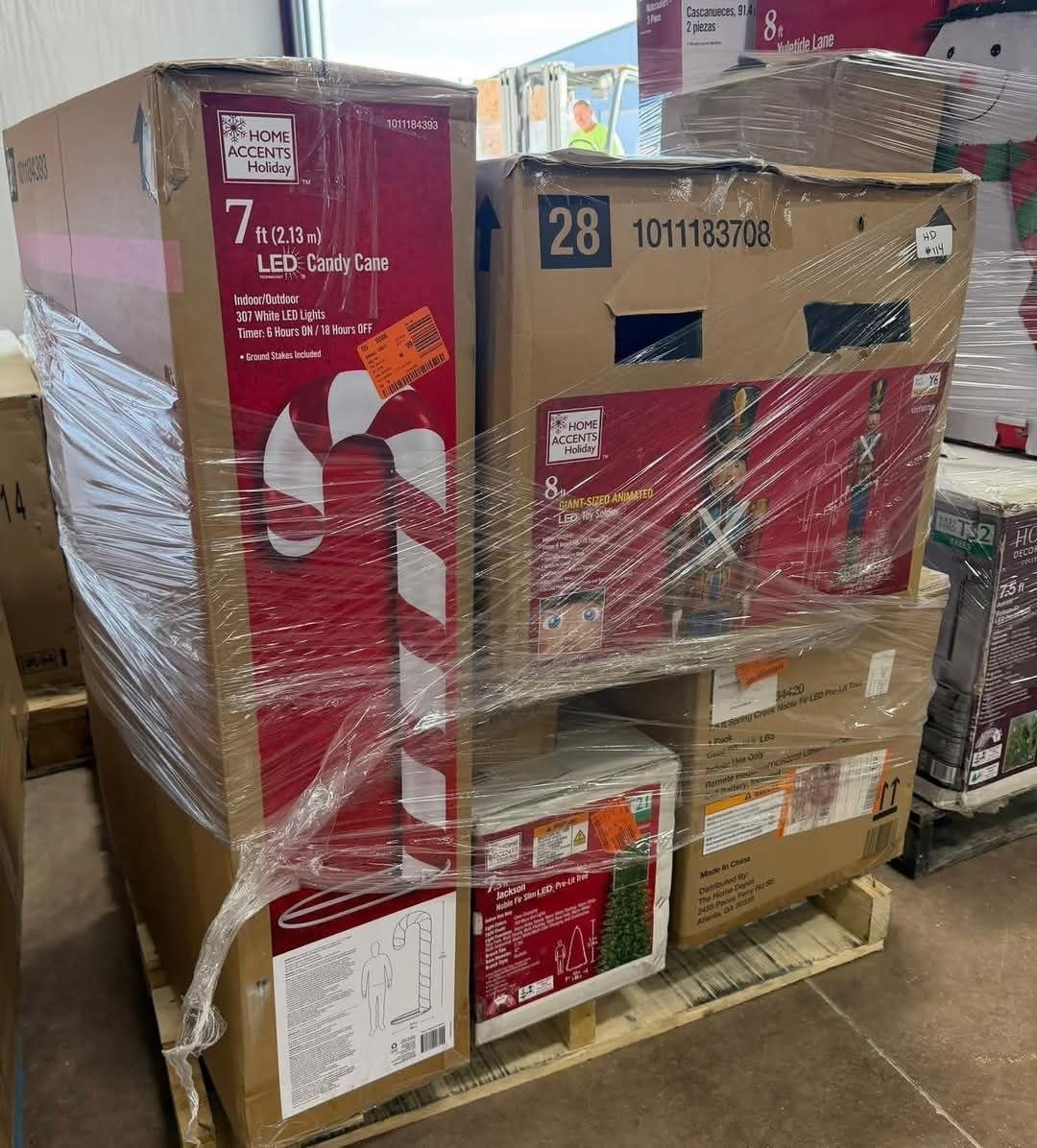 A festive mixed pallet loaded with Home Accents Christmas décor — perfect for holiday sellers, boutiques, pop-ups, flea markets, and bin stores.