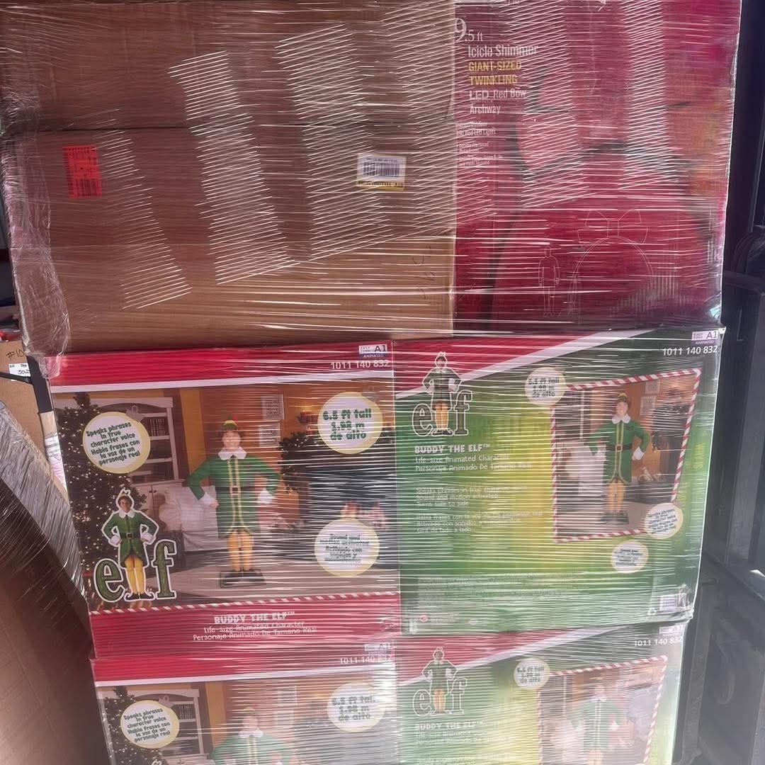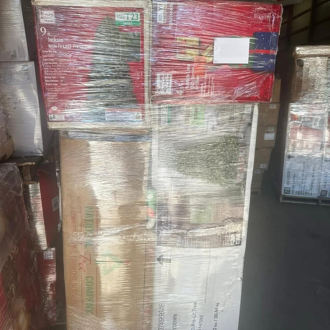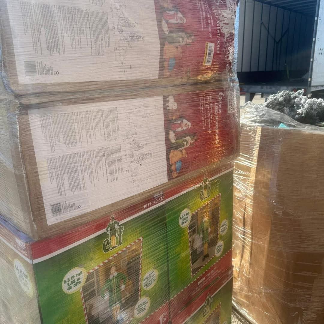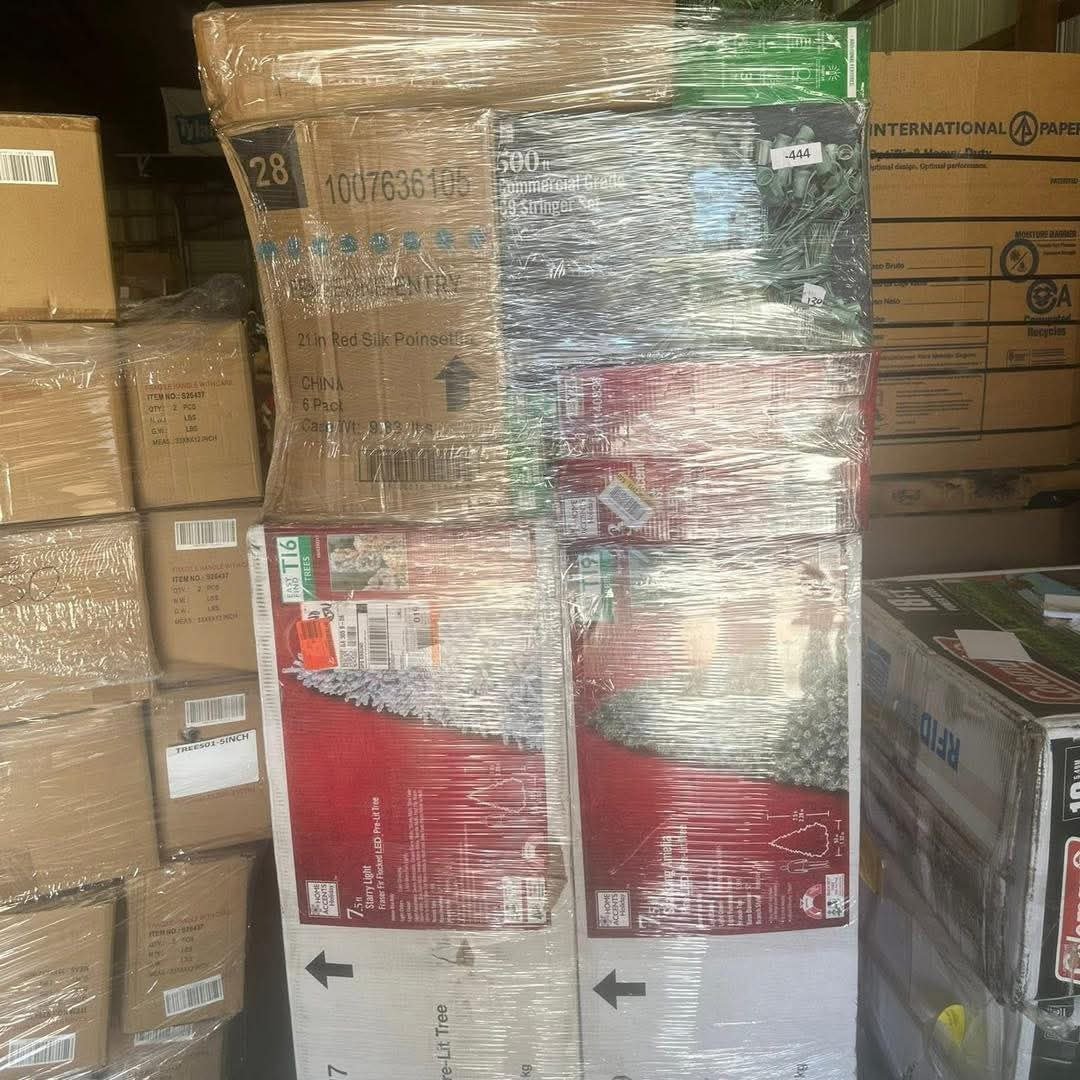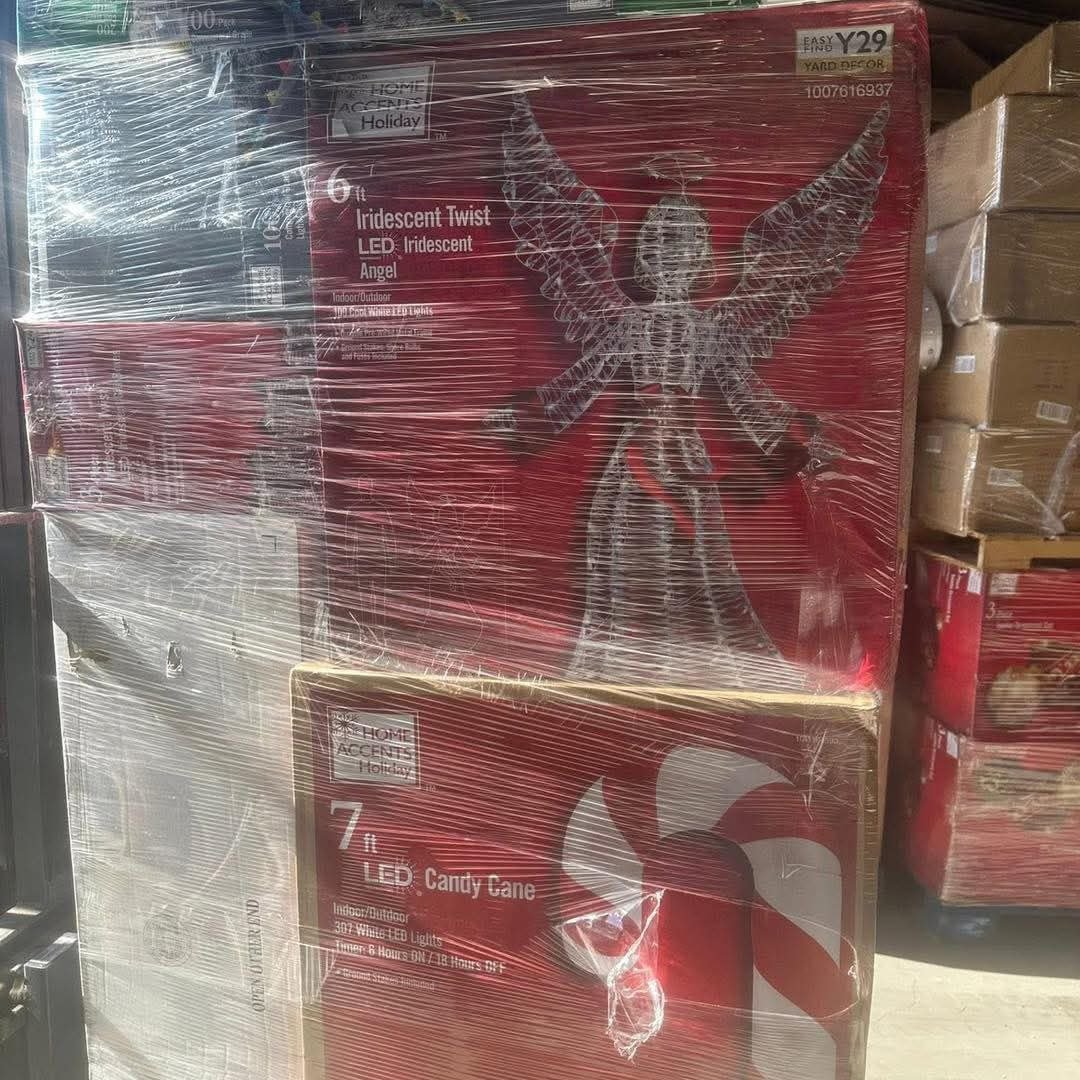 A festive mixed pallet loaded with Home Accents Christmas décor — perfect for holiday sellers, boutiques, pop-ups, flea markets, and bin stores.